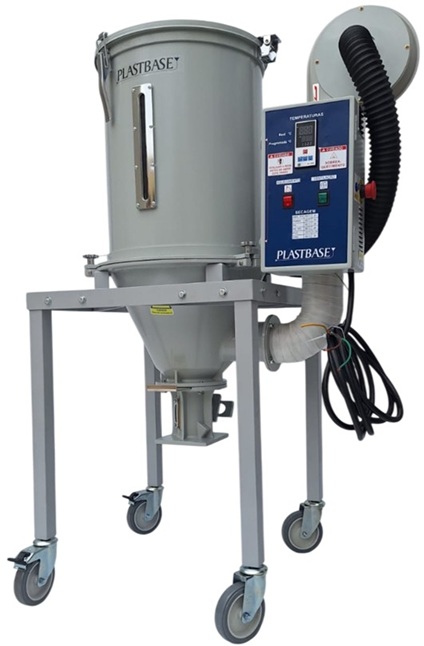O Suporte com rodízios é uma opção para o Secador ficar fora da máquina, sobre o piso, para atender mais de uma máquina ao mesmo tempo.